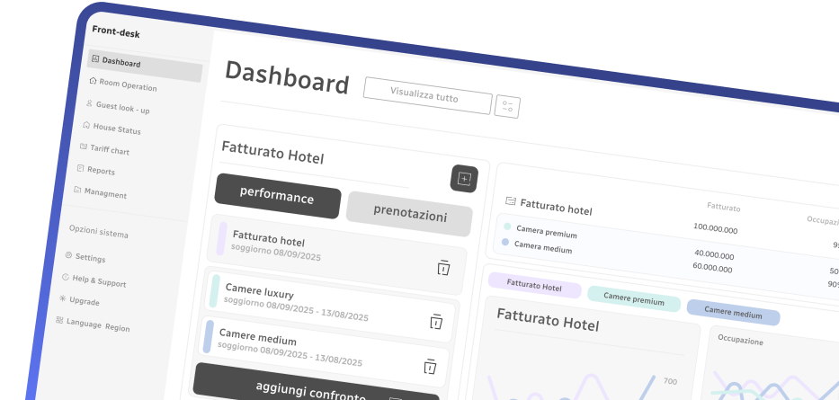 Prenotazioni, tariffe, disponibilità e clienti con una dashboard intuitiva e potente.